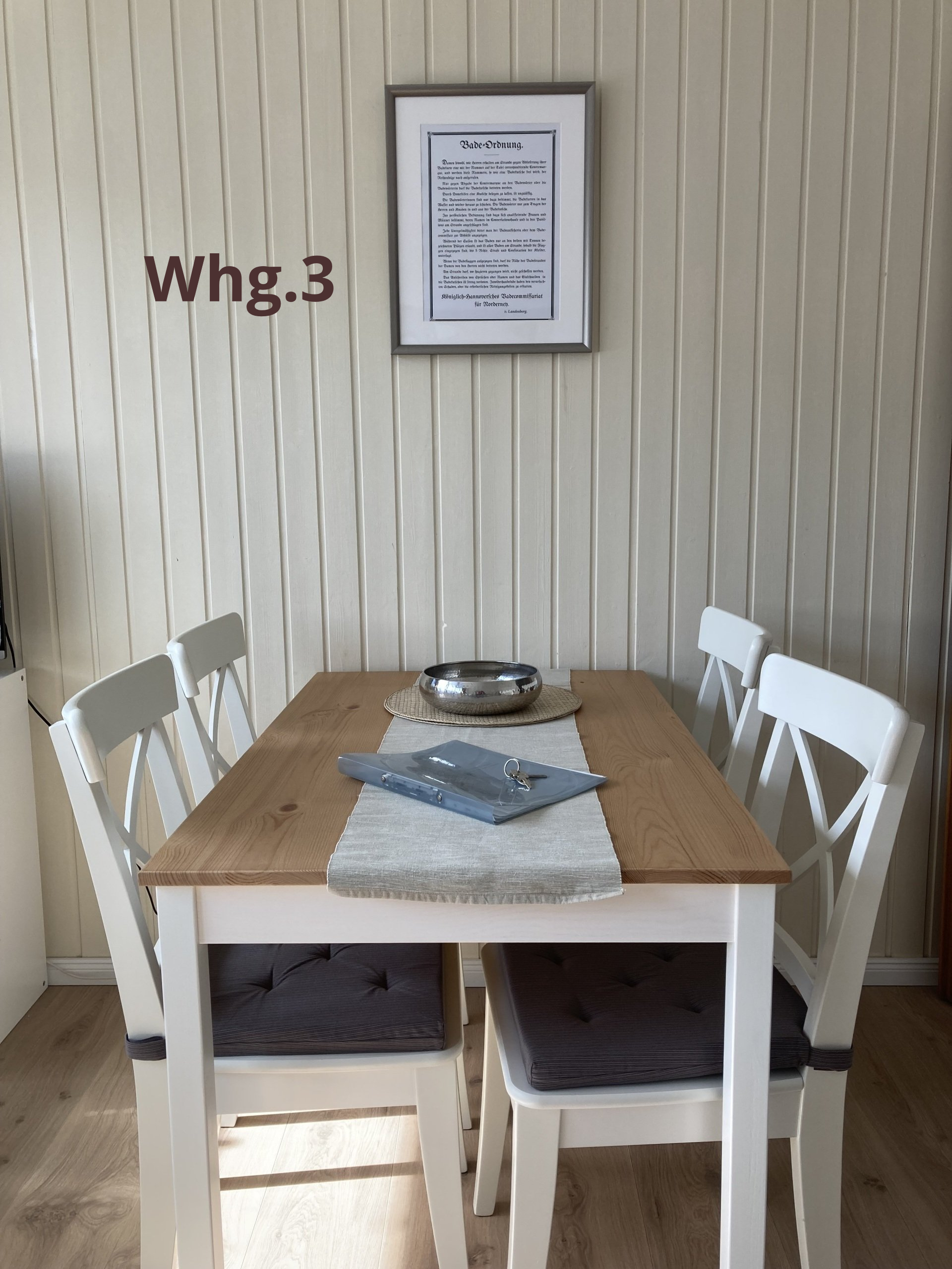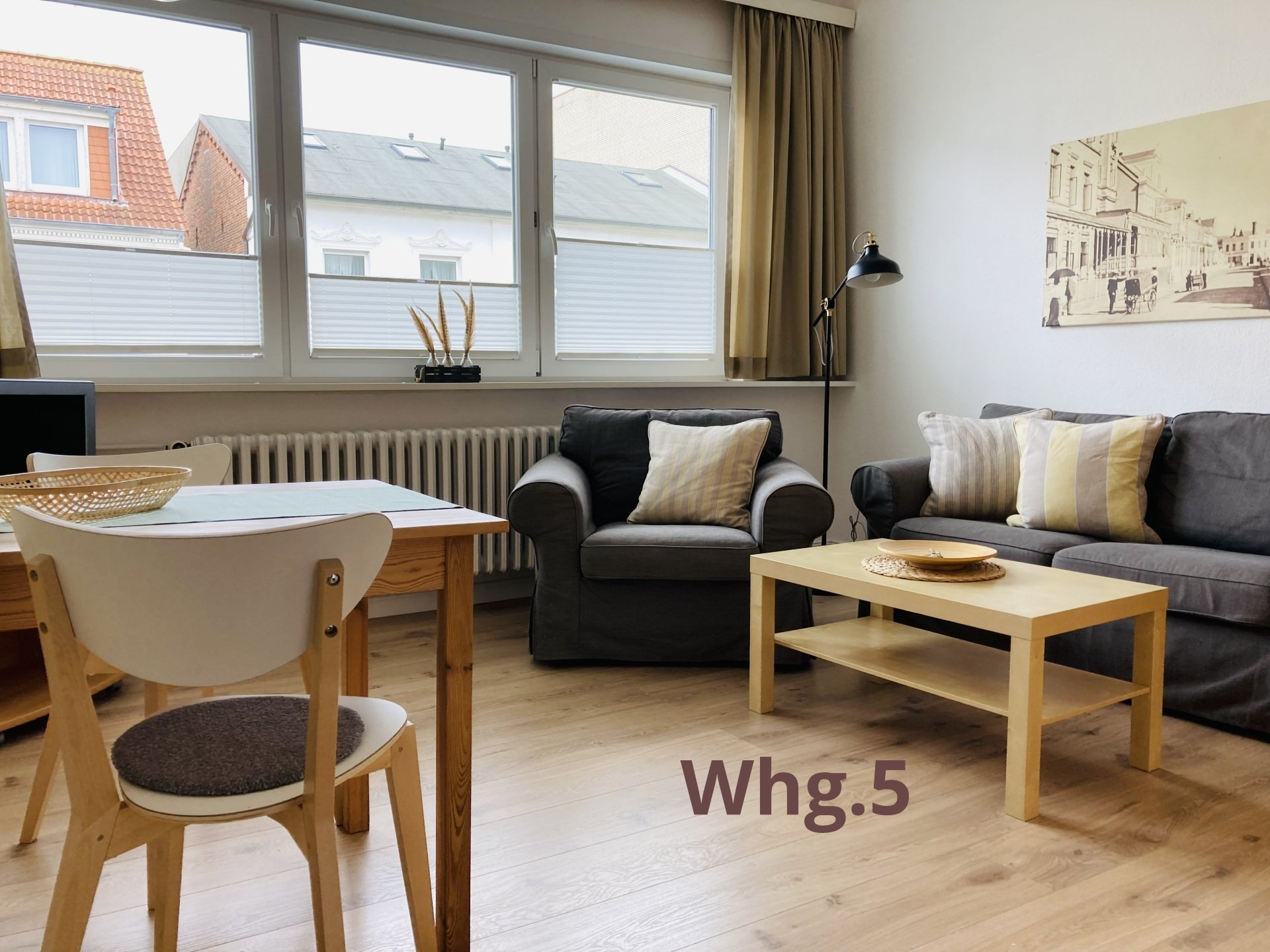 Die in der 1.Etage liegenden Wohnungen 3 und 5 sind ca. 42 qm groß und für 2-3 Personen geeignet. Sie verfügen über 1 Schlafzimmer zum Garten/Hof, 1 Wohnzimmer mit Schrankbett, 1 kleine Küche, Dusche/WC.